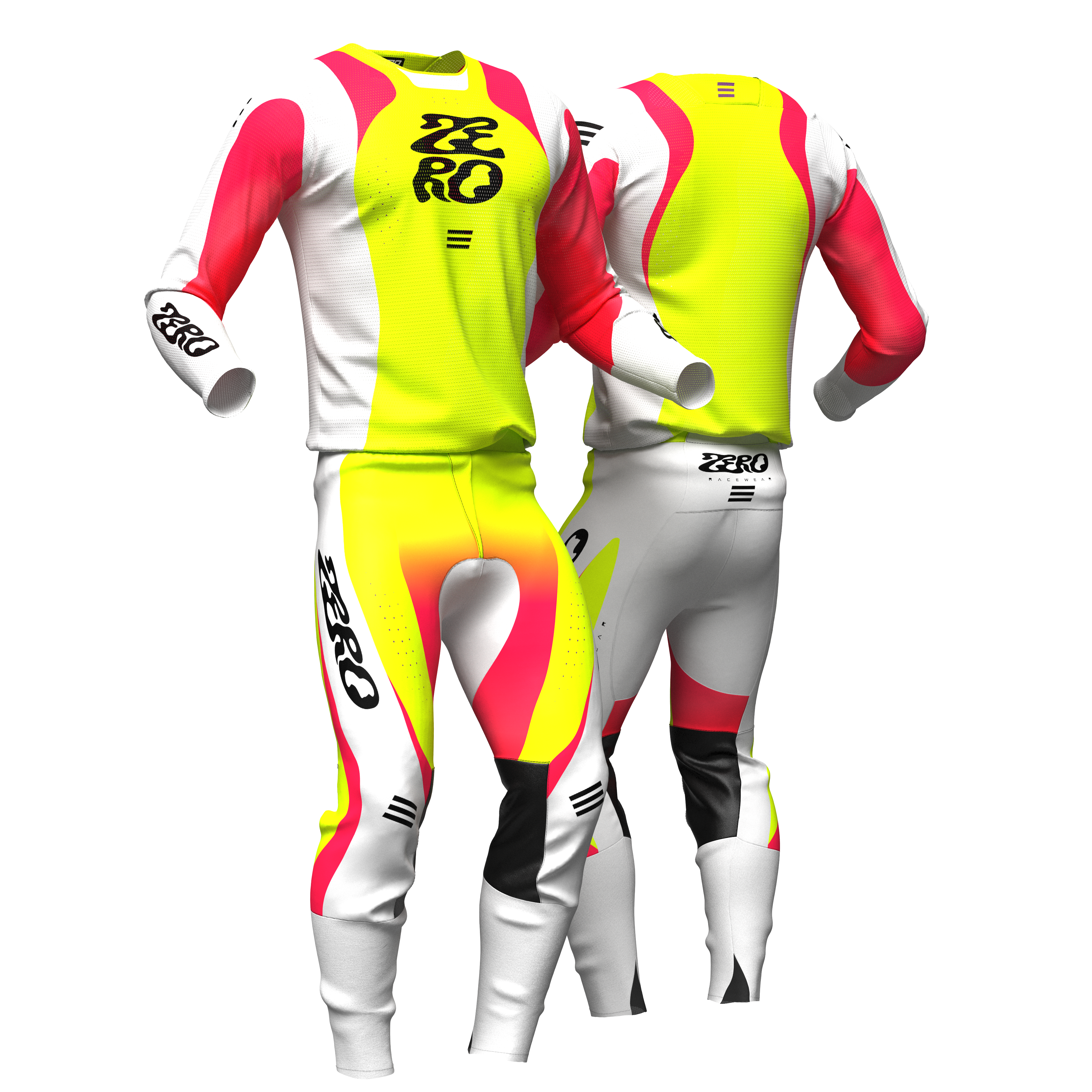 ZERO Racewear includes our Pro Spec Jersey and Pants. We will add your name/number utilizing our custom font and any additional sponsor logos requested FREE of charge.